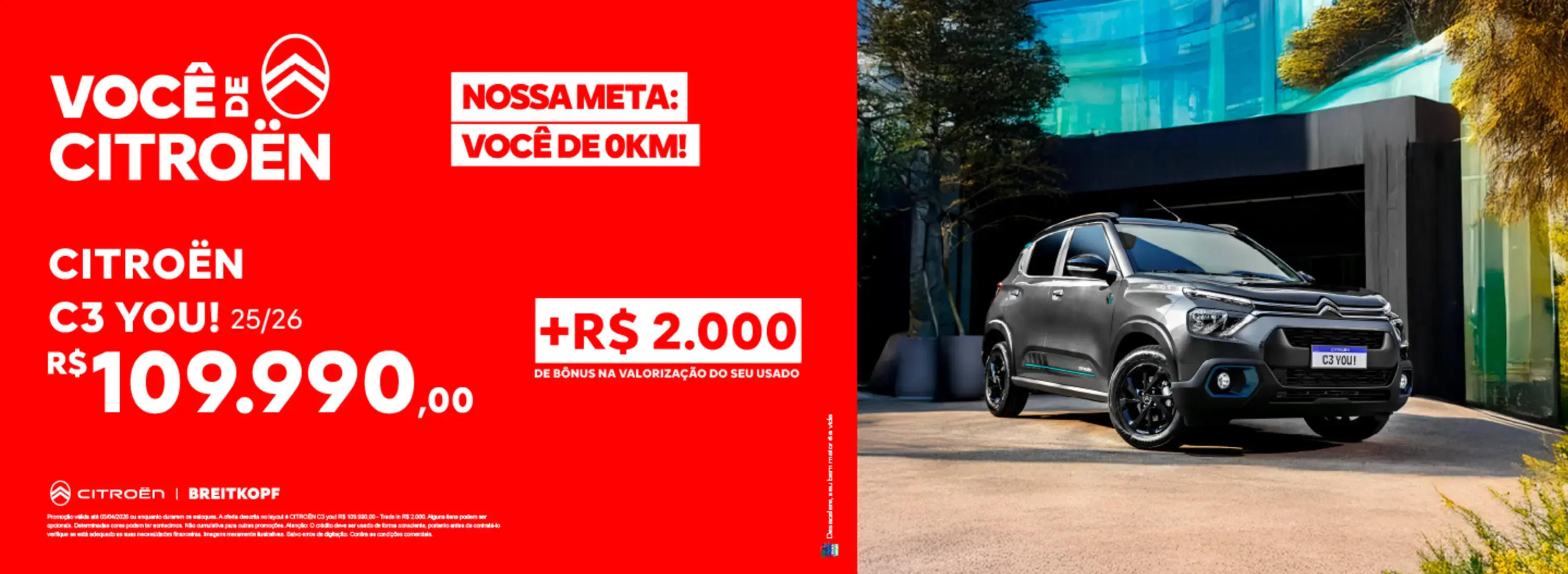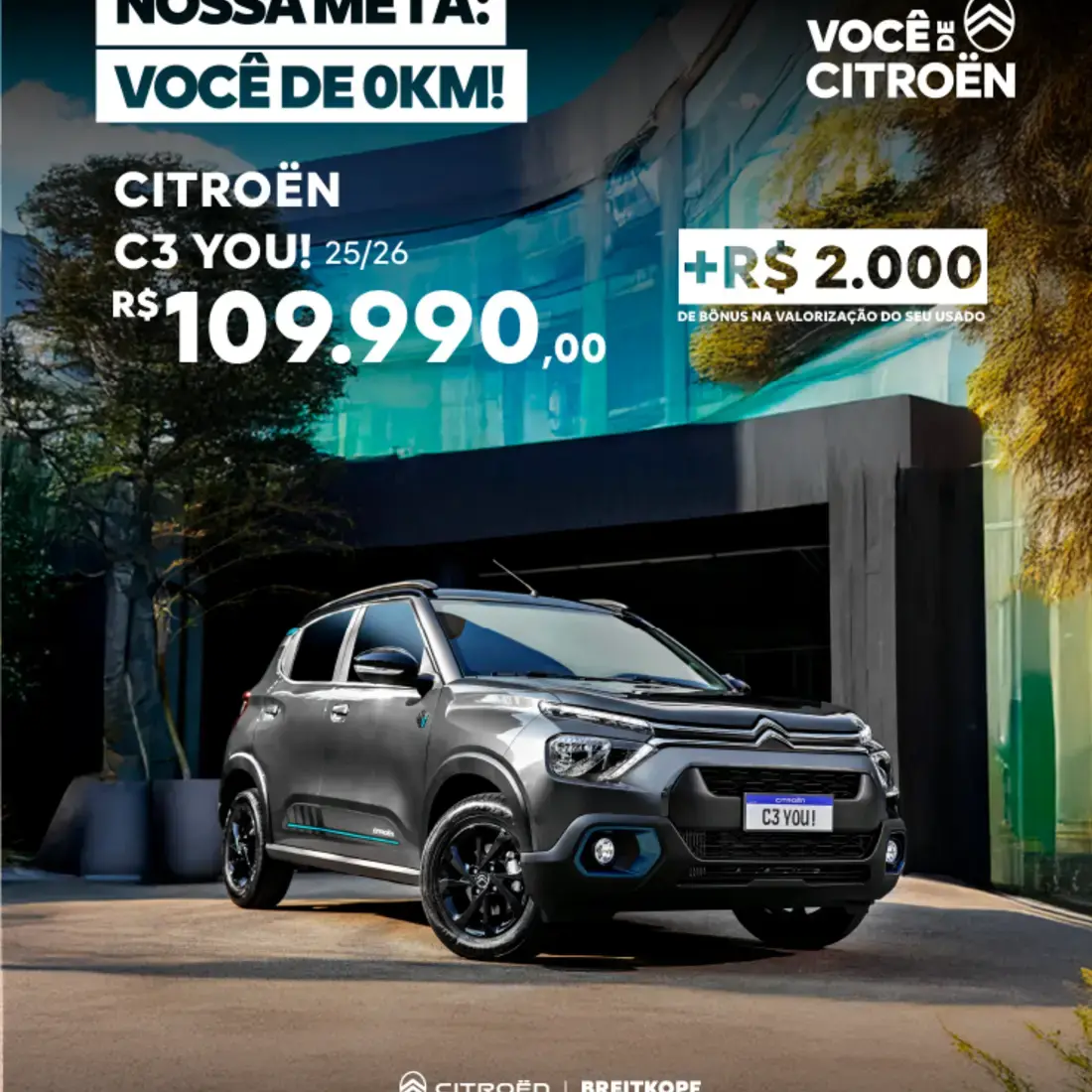Vendas diretas com as melhores condições é na Breitkopf Citroën.